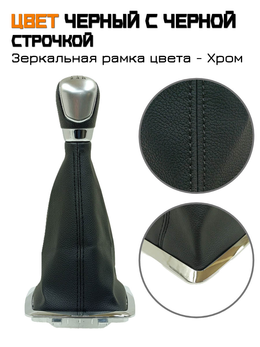 Купить Ручка КПП в сборе с чехлом на Ford Focus II Форд Фокус 2 (большая рамка, черный серебристый верх)