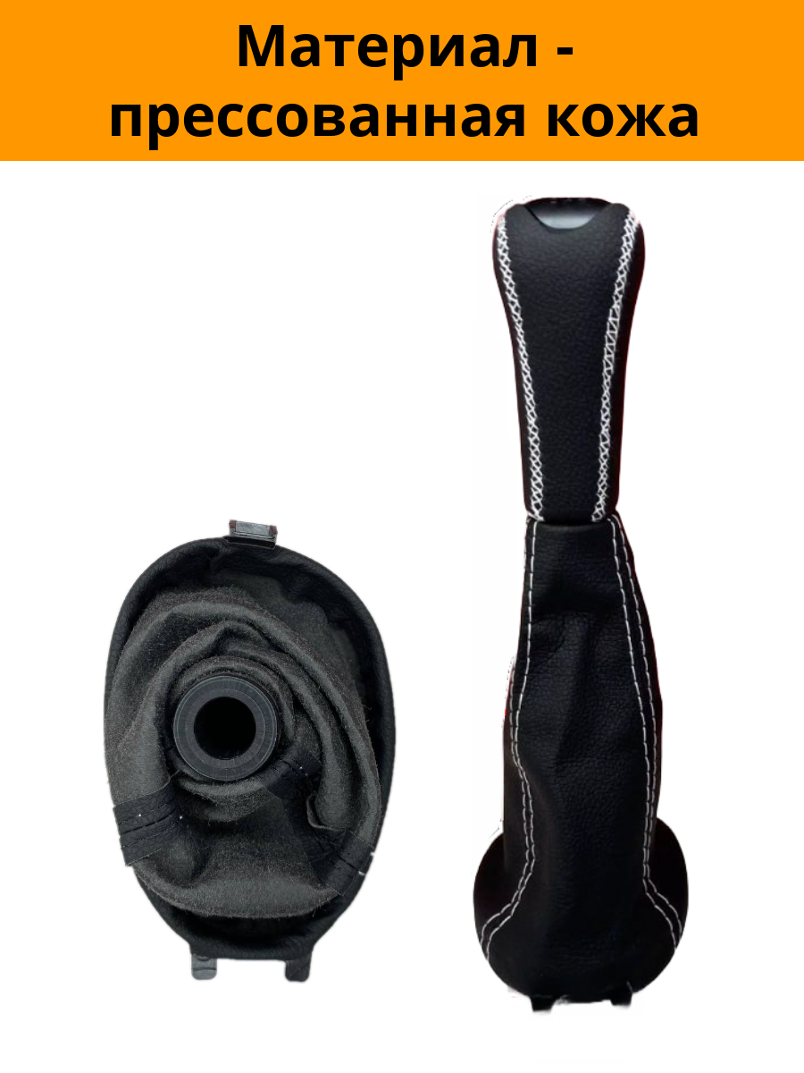 Ручка КПП с чехлом PREMIUM на Lada Largus, Renault Logan, черный, ручка коробки переключения передач (белая строчка)