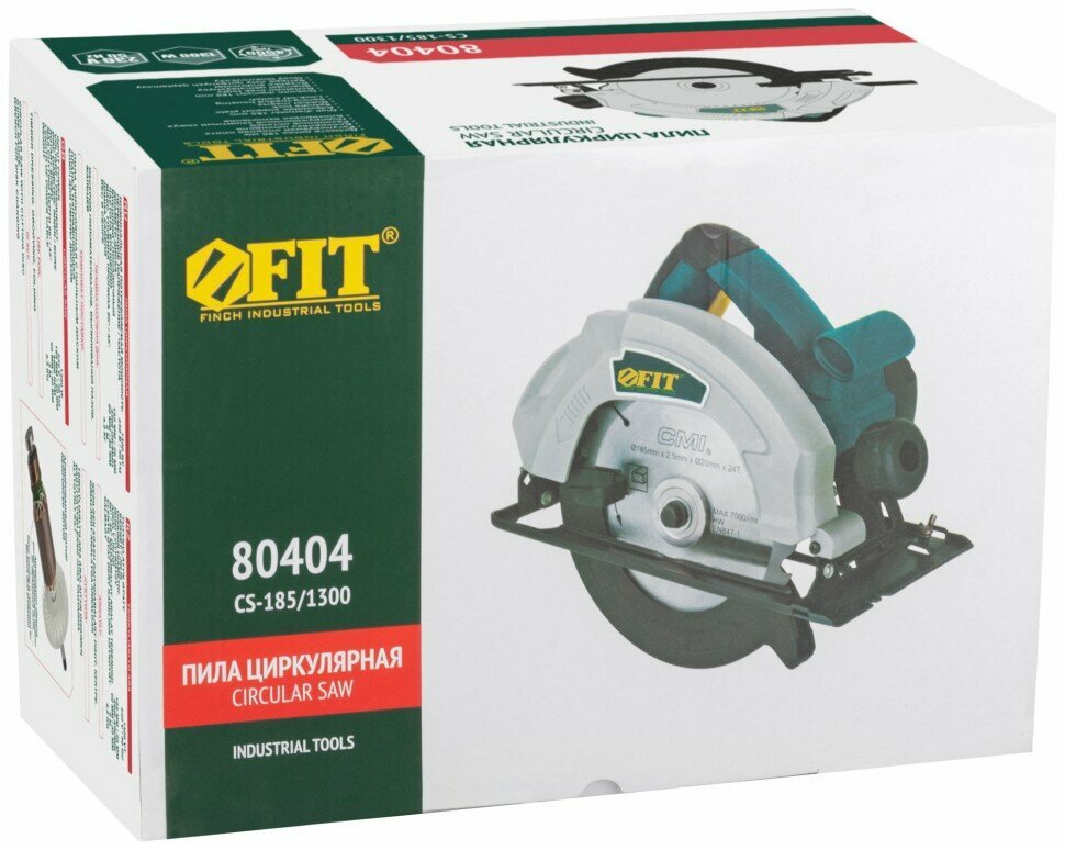 Купить Пила дисковая 1300 Вт; 4500 об/мин; 185/20 мм; жел. опора; рез. накл.; блок шпинд.; коробка FIT