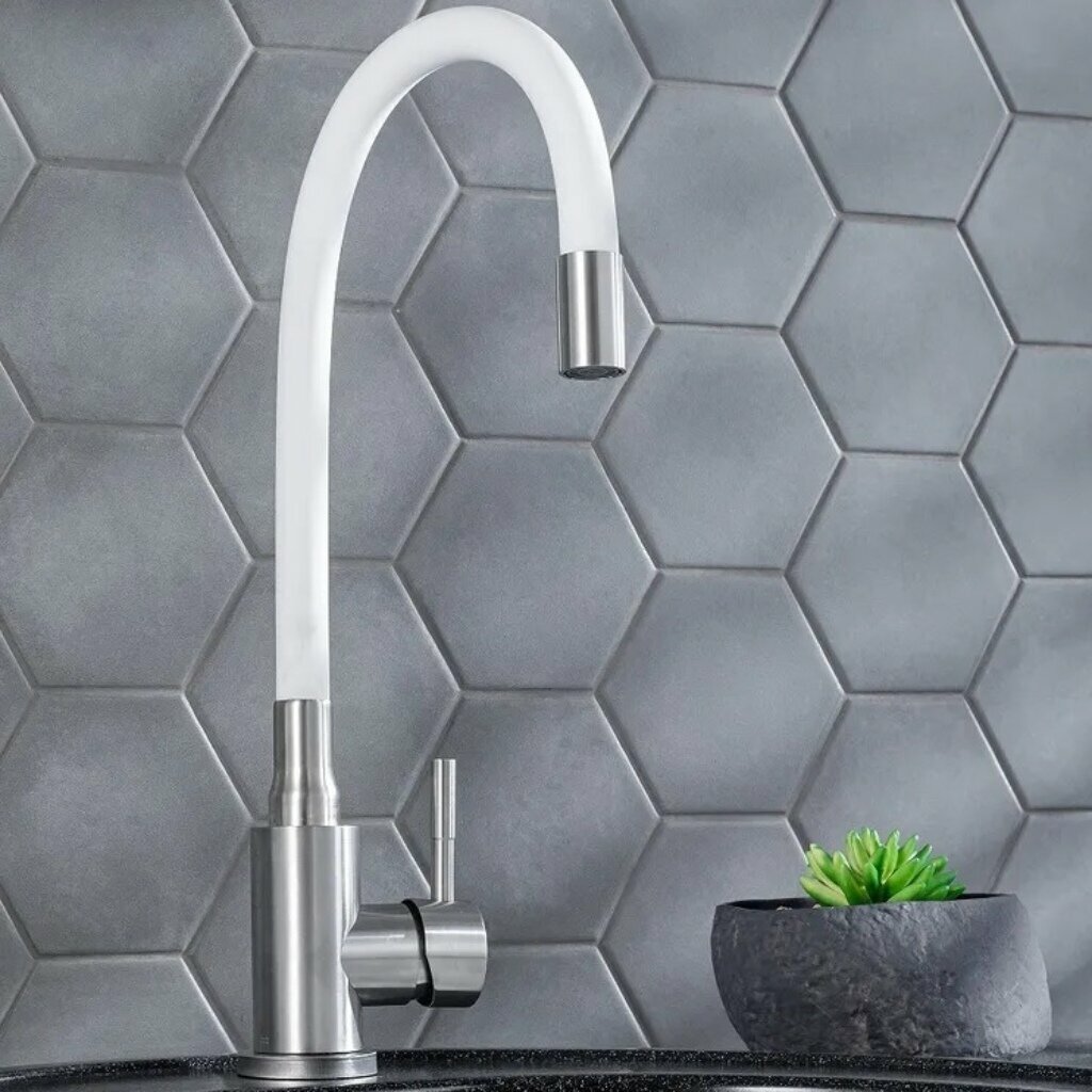 Смеситель для кухни, РМС, с картриджем, гибкий излив, белый, SUS124W-016F