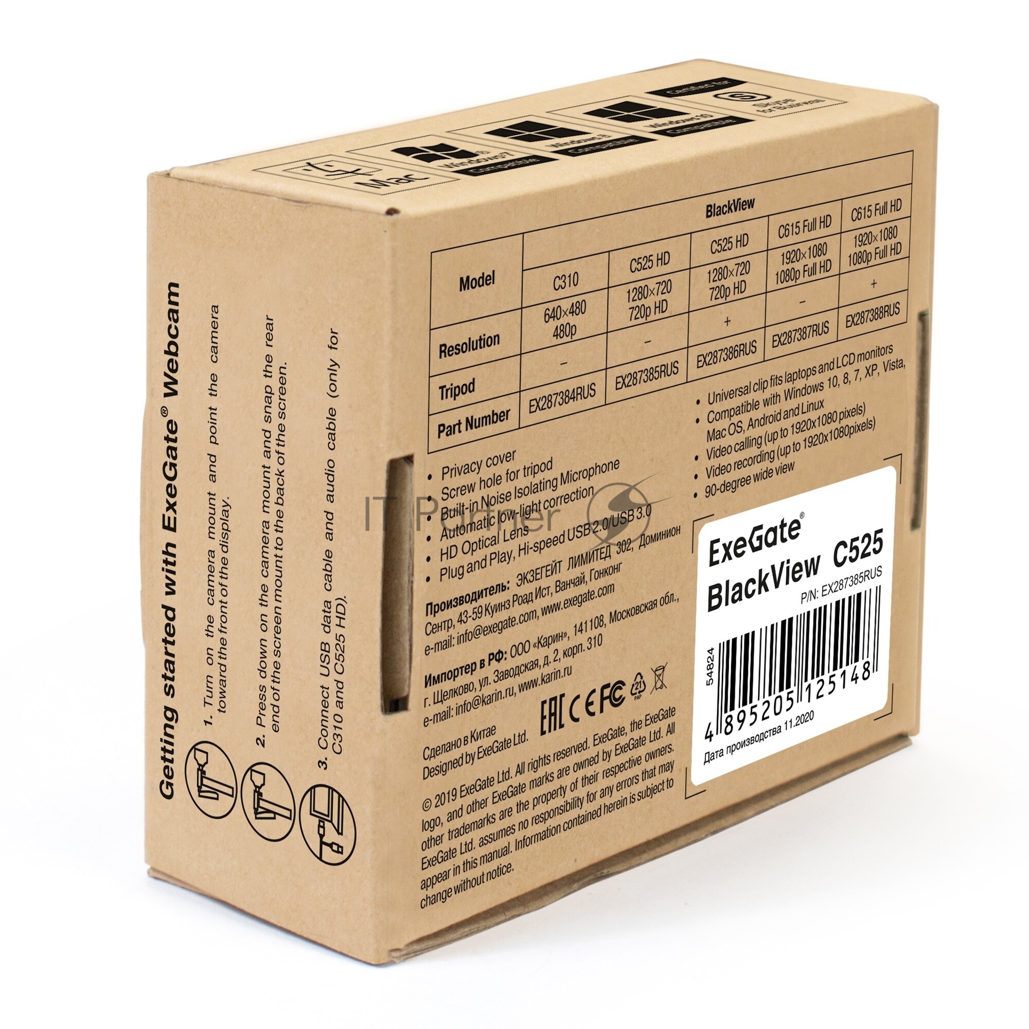 Exegate Ex287385rus Веб-камера ExeGate BlackView C525 HD (матрица 1/3" 1,3 Мп, 1280х720, 720P, 30fps .