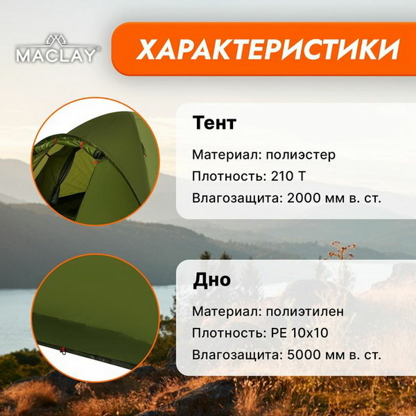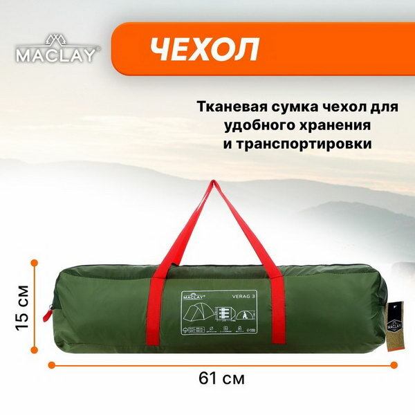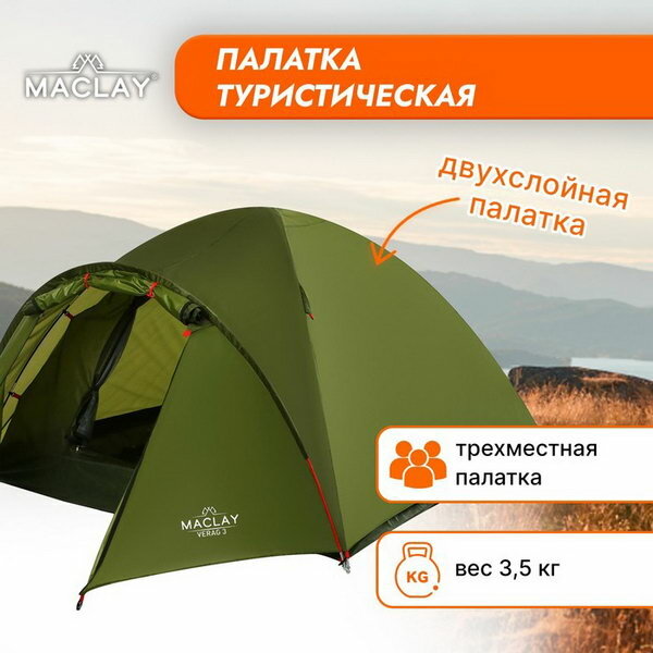 Maclay Палатка туристическая Maclay VERAG 3, р. 315х210х120 см, 3-местная, двухслойная