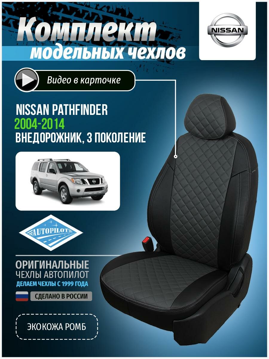 Купить Чехлы для Nissan Pathfinder 3 2004-2014 Автопилот Темно-Серый Экокожа с ромбом ni-pf-t14-chets-r