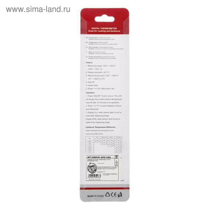 Купить Термощуп кухонный LTR-19, максимальная температура 300 °C, от LR44, серебристый 5260478