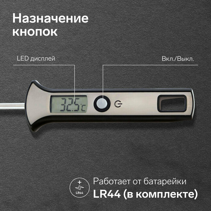 Термощуп кухонный LTR-19, максимальная температура 300 °C, от LR44, серебристый 5260478 интересное: