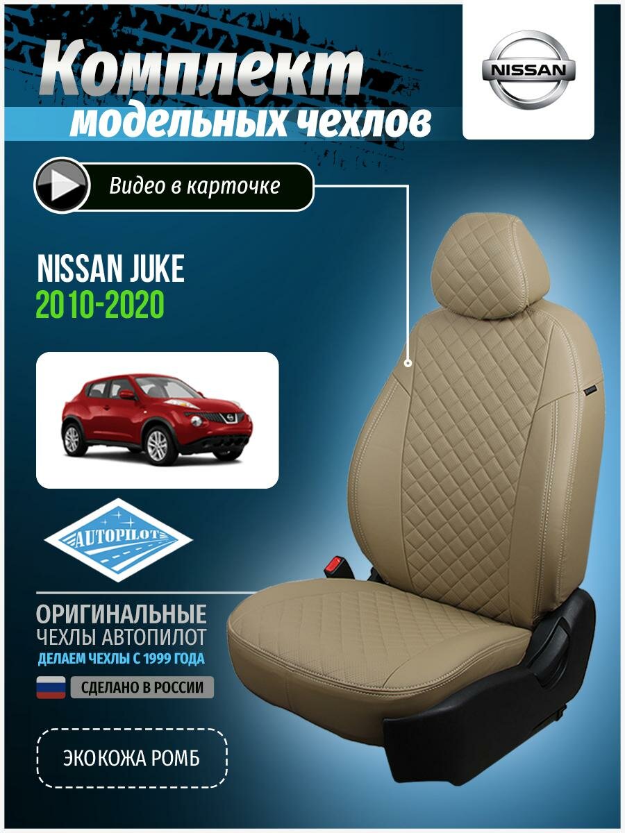Купить Авточехлы для Nissan Juke 1 2010-2019 Автопилот Темно-Бежевый Экокожа с ромбом ni-zhk-zh10-tbtb-r