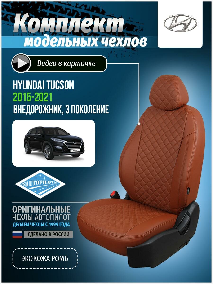 Авточехлы для Hyundai Tucson 3 2015-2020 Автопилот Коричневый Экокожа с ромбом kha-tu-t3-koko-r интересное: