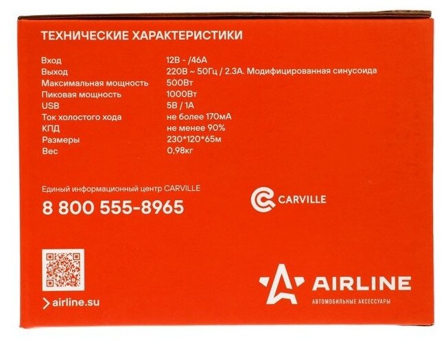 Инвертор AIRLINE API-400-03 500W серебристый/оранжевый