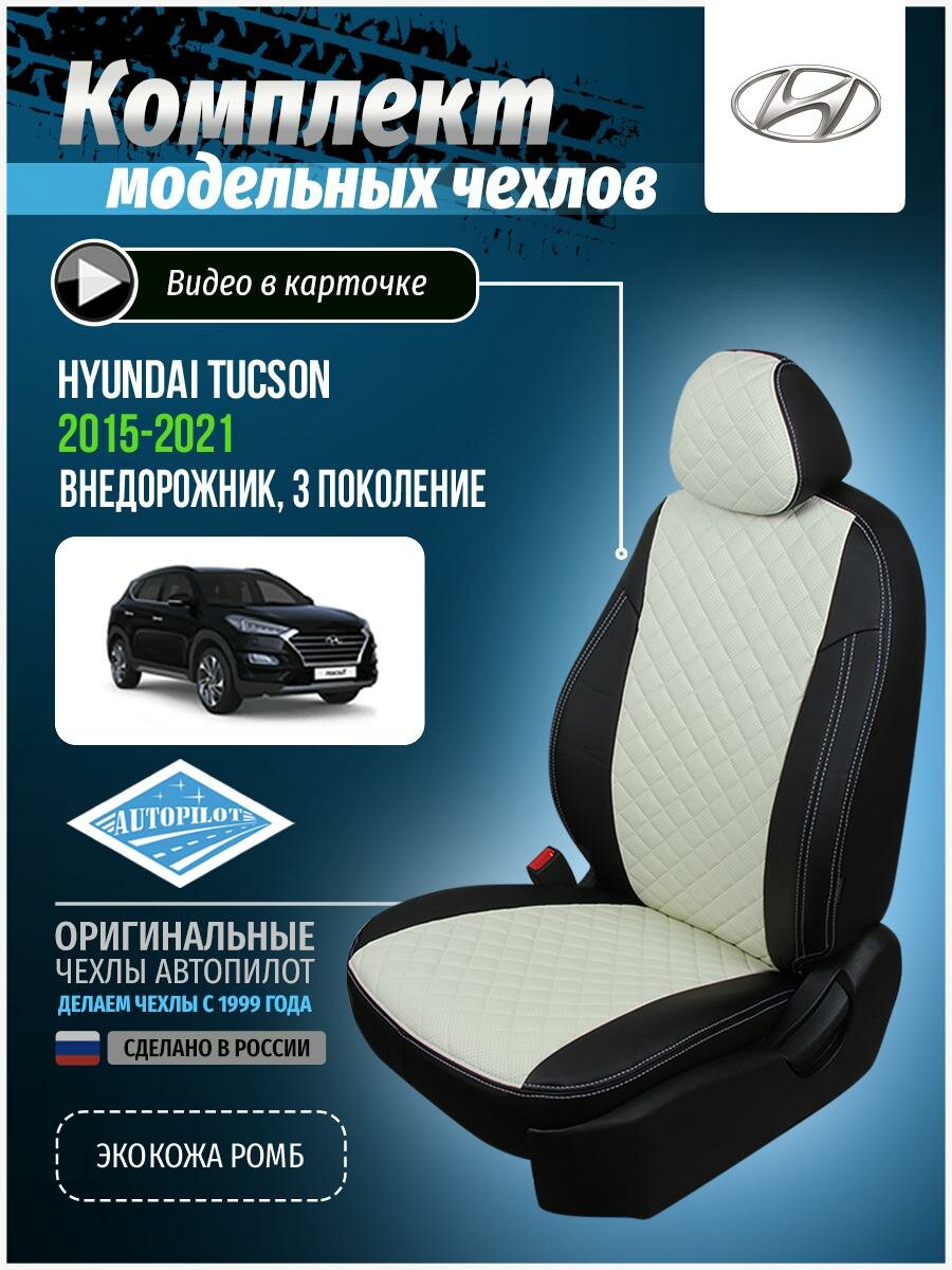 Авточехлы для Hyundai Tucson 3 2015-2020 Автопилот Белый Экокожа с ромбом kha-tu-t3-chb-r интересное: