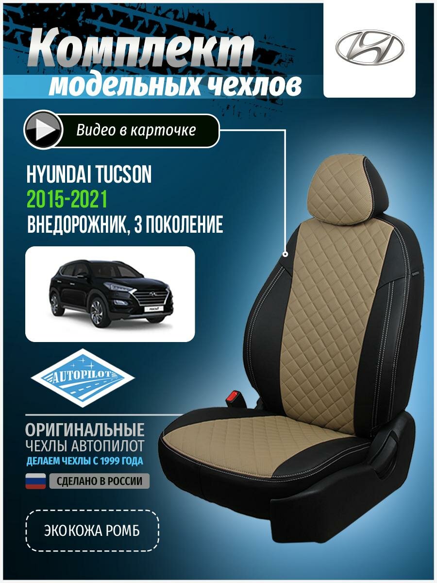 Чехлы для Hyundai Tucson 3 2015-2020 Автопилот Темно-Бежевый Экокожа с ромбом kha-tu-t3-chetb-r интересное: