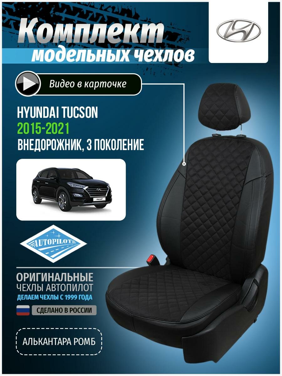 Авточехлы для Hyundai Tucson 3 2015-2020 Автопилот Черный Алькантара с ромбом kha-tu-t3-chch-ar интересное:
