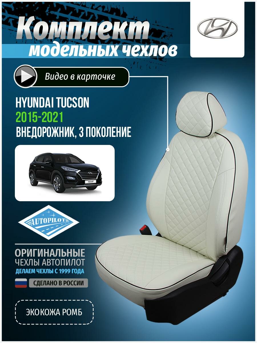 Авточехлы для Hyundai Tucson 3 2015-2020 Автопилот Белый Экокожа с ромбом kha-tu-t3-bb-r интересное: