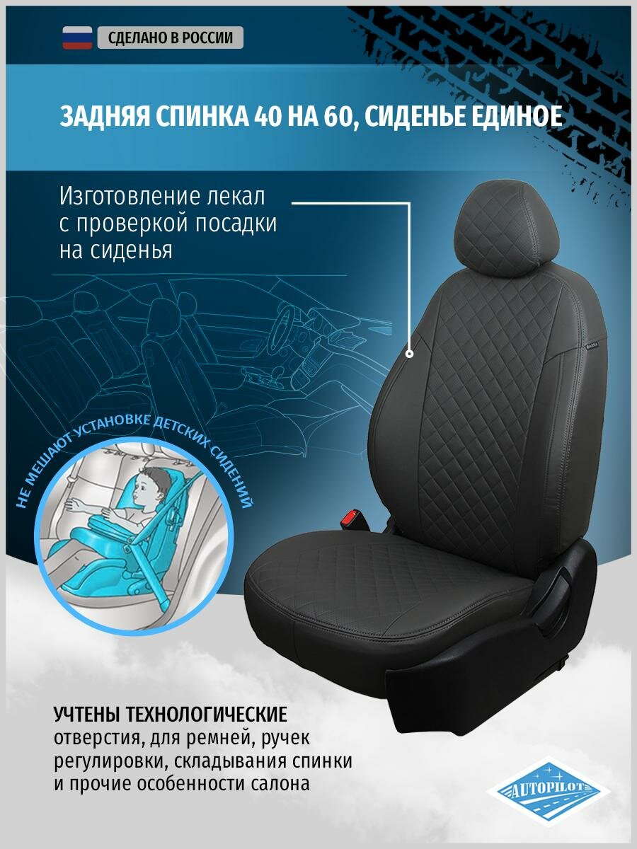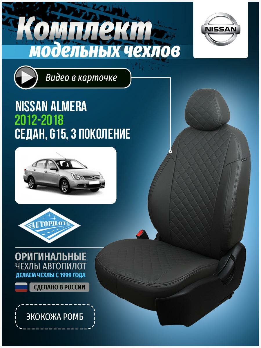 Авточехлы для Nissan Almera 3 G15 2012-2018 Автопилот Темно-Серый Экокожа с ромбом ni-al-g15-tsts-r интересное: