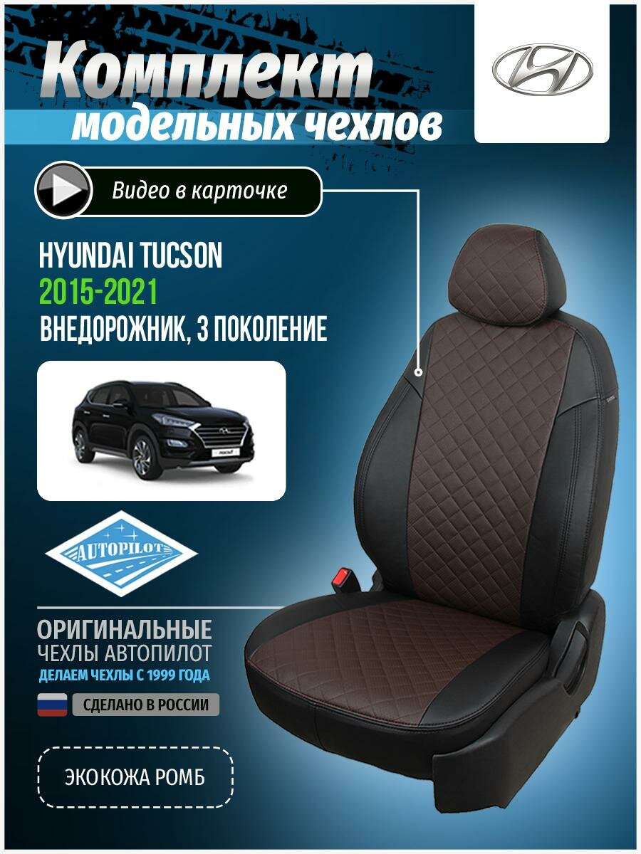 Чехлы для Hyundai Tucson 3 2015-2020 Автопилот Шоколадный Экокожа с ромбом kha-tu-t3-chesho-r интересное: