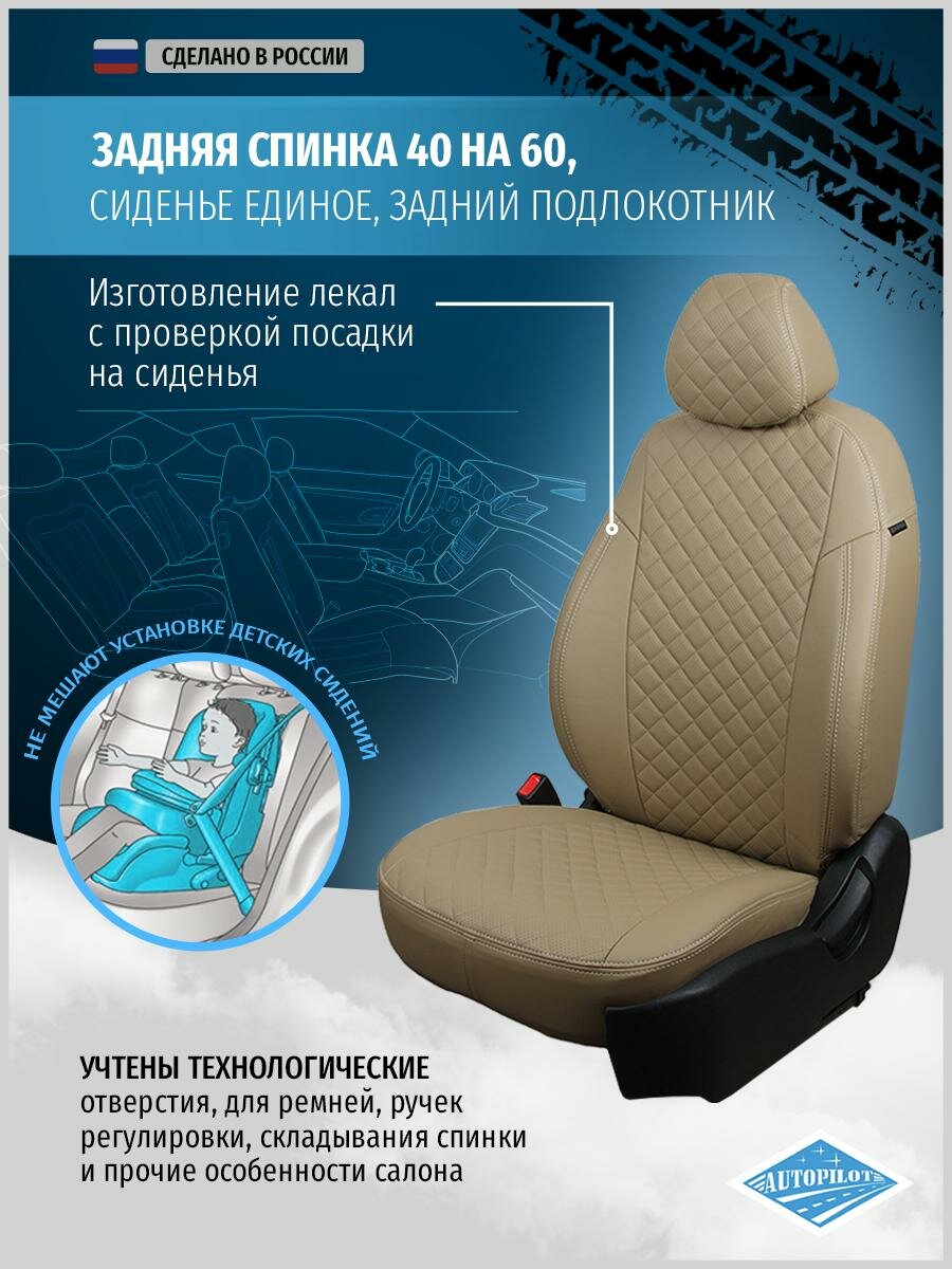 Купить Авточехлы для Hyundai Tucson 3 2015-2020 Автопилот Темно-Бежевый Экокожа с ромбом kha-tu-t3-tbtb-r