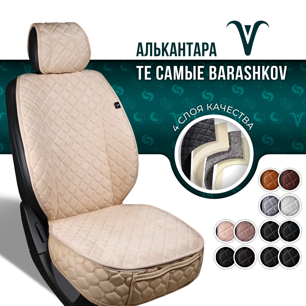 СохранитьBARASHKOV/ Накидка из алькантары на переднее сиденье автомобиля. Модель XL/ Бежевый интересное: