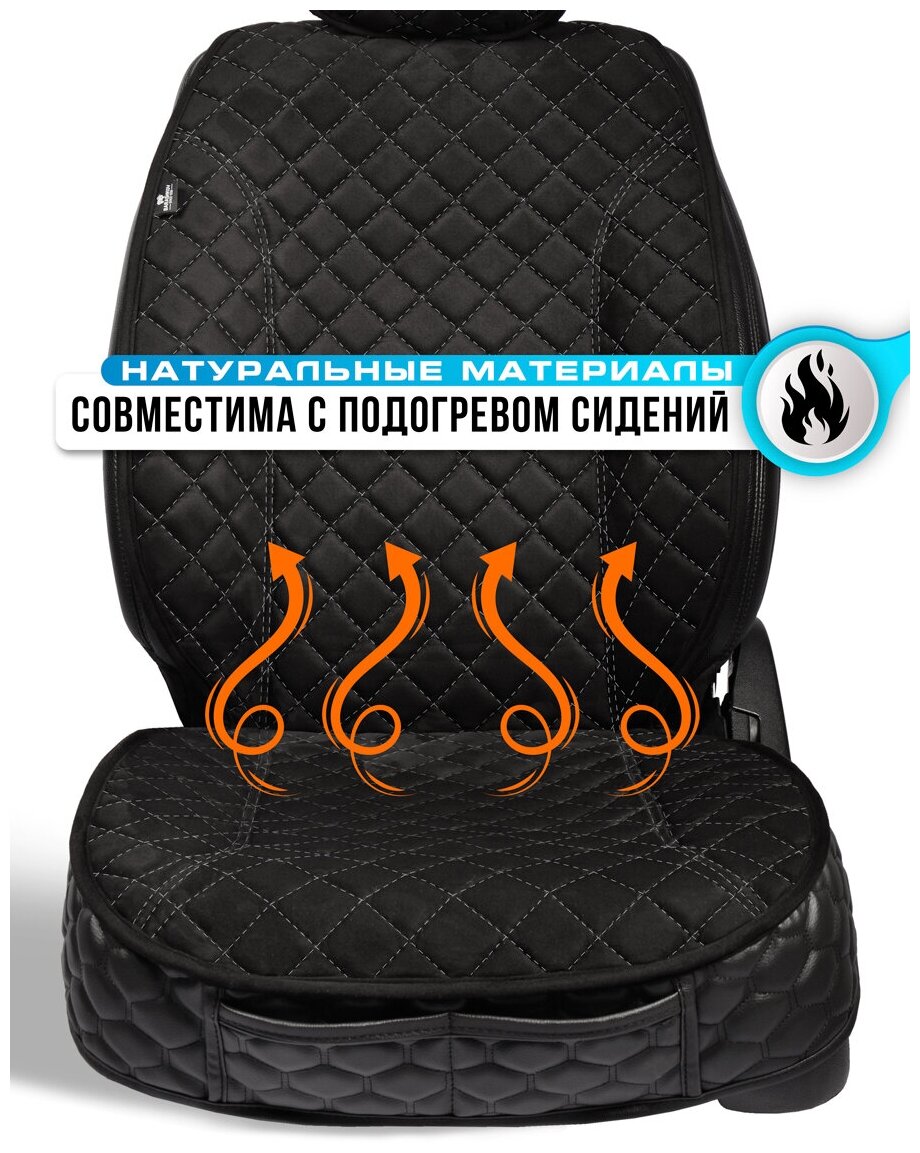 BARASHKOV/ Накидка из алькантары на переднее сиденье автомобиля. Модель XL/ Черный, белая строчка