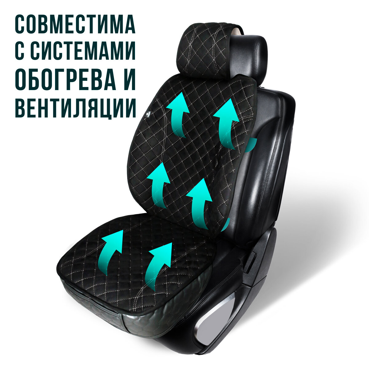 СохранитьBARASHKOV/ Накидка из алькантары на переднее сиденье автомобиля. Модель XL/ Черный, белая строчка интересное: