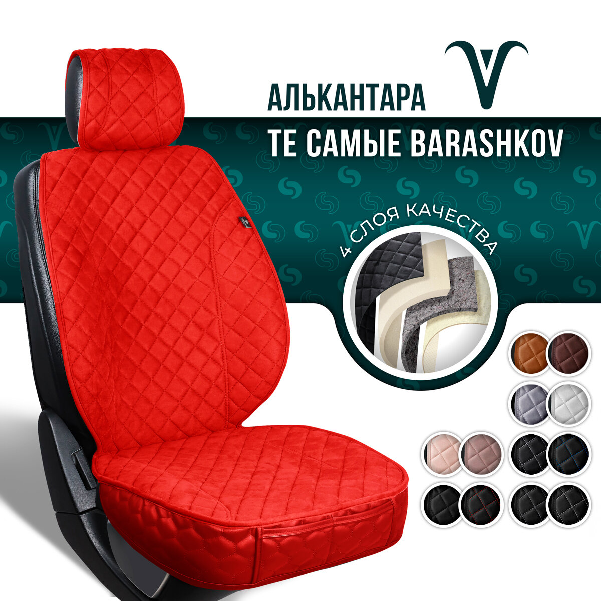 BARASHKOV/ Накидка из алькантары на переднее сиденье автомобиля. Модель XL/ черный,красный