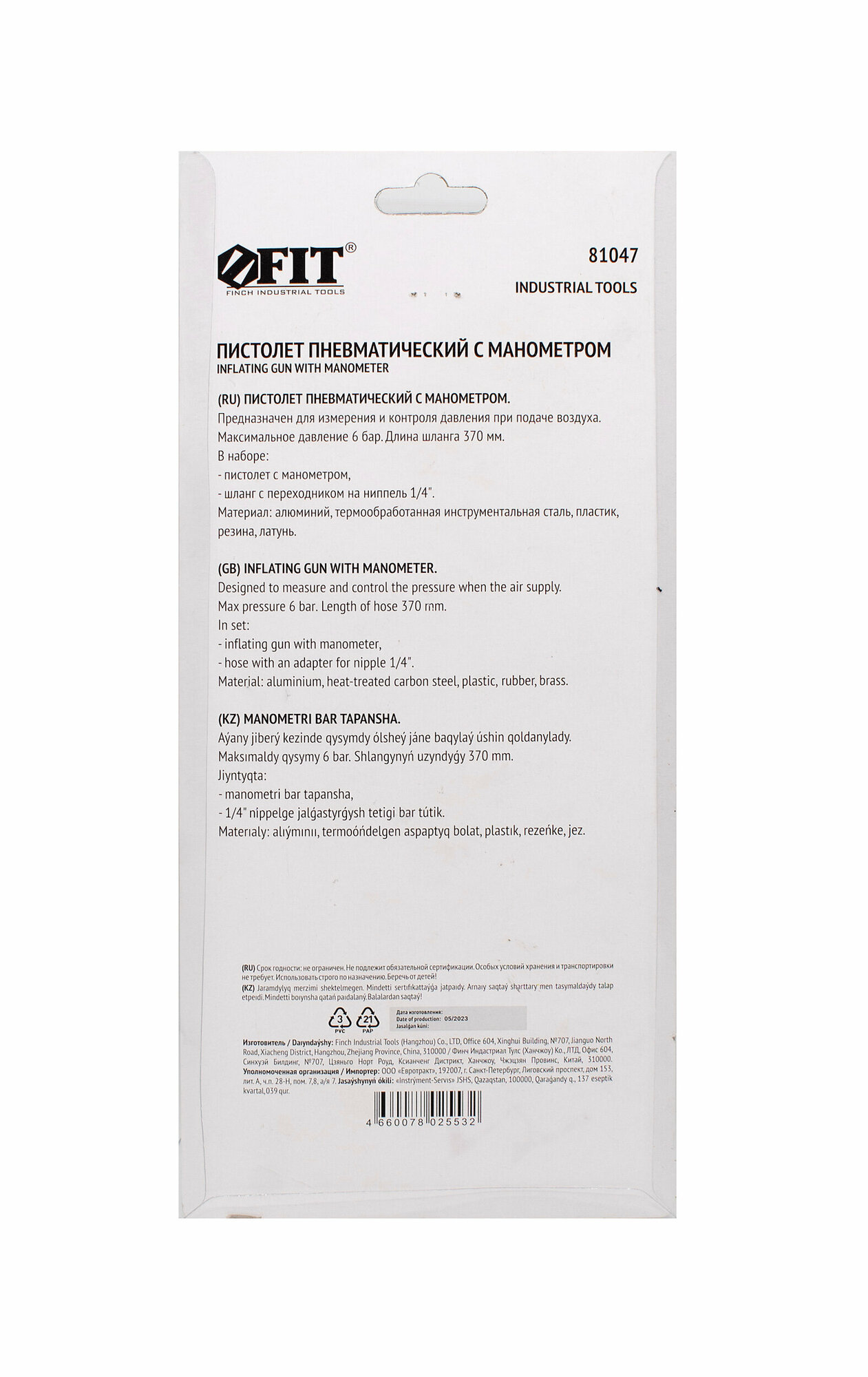Пистолет с манометром, быстросъемное соединение, FIT 81047 (1 шт.)