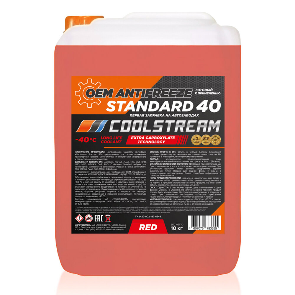 Антифриз Standard 40 красный 10кг COOLSTREAM / арт. CS010203RD - (1 шт)