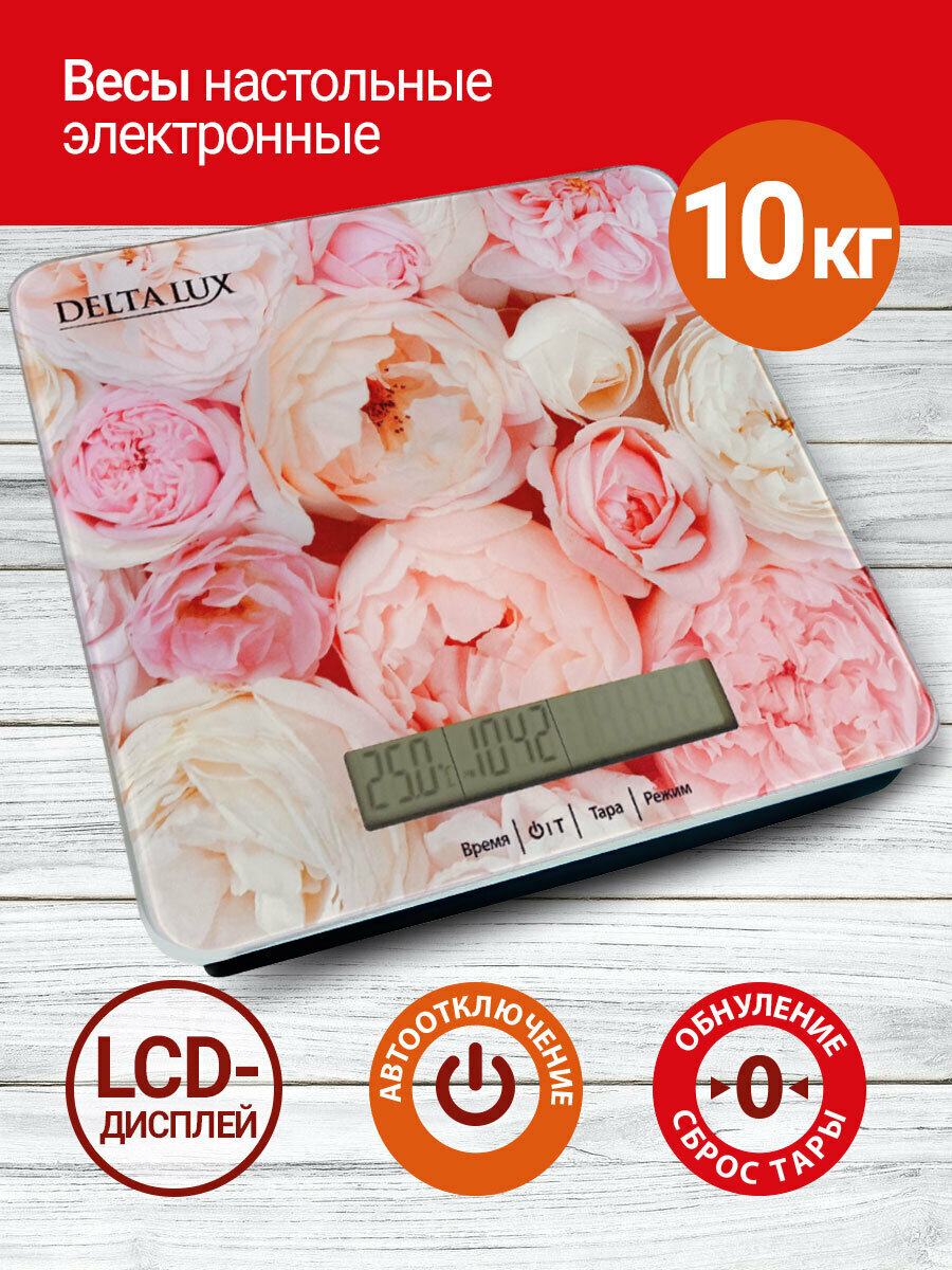 Весы кухонные DELTA LUX DE-004KE, Пионы интересное: