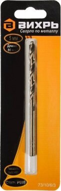 Сверло по металлу Вихрь 5мм, P6M5 (1 шт.) (73/10/6/3) интересное: