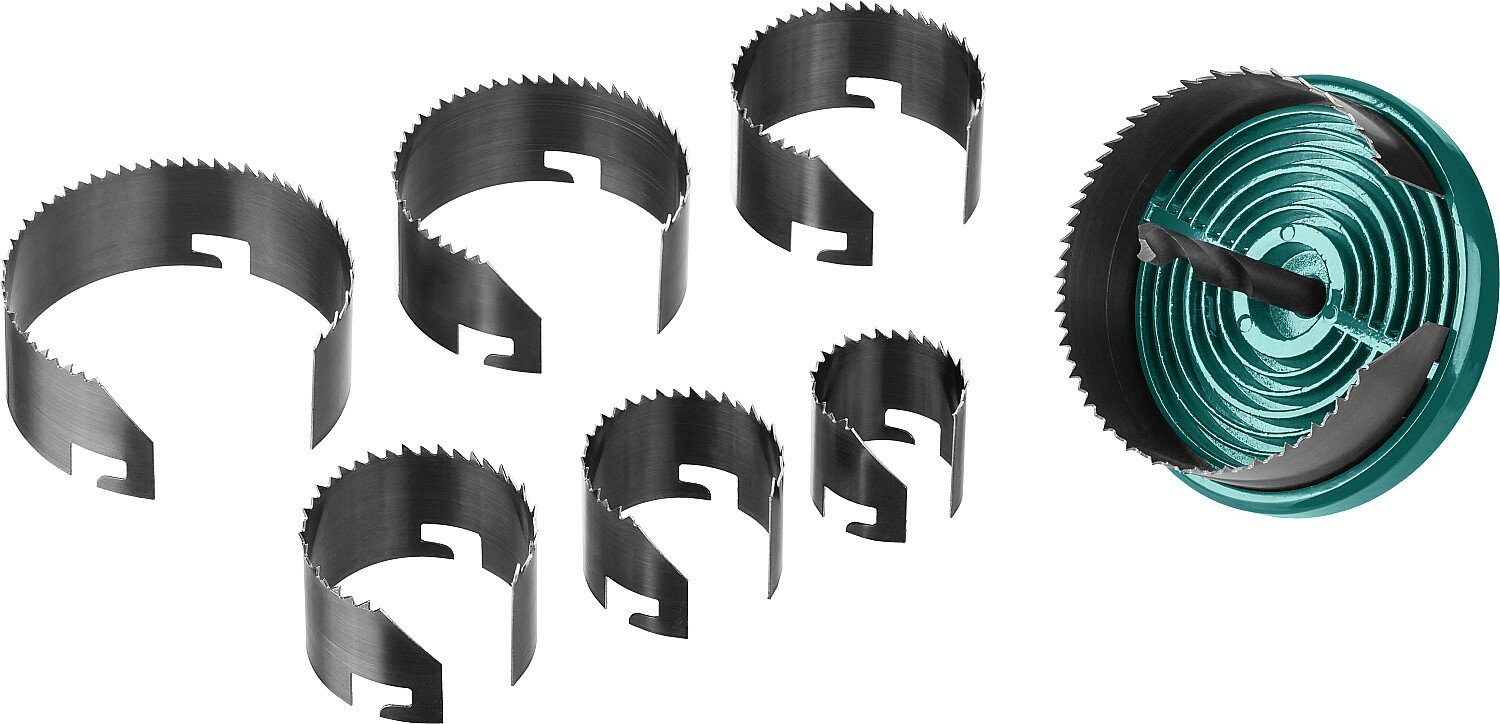 Купить KRAFTOOL 7шт(25-62/18мм), кольцевая пила по дереву, сегментная, наборная: 25-32-38-45-50-56-62х18 мм