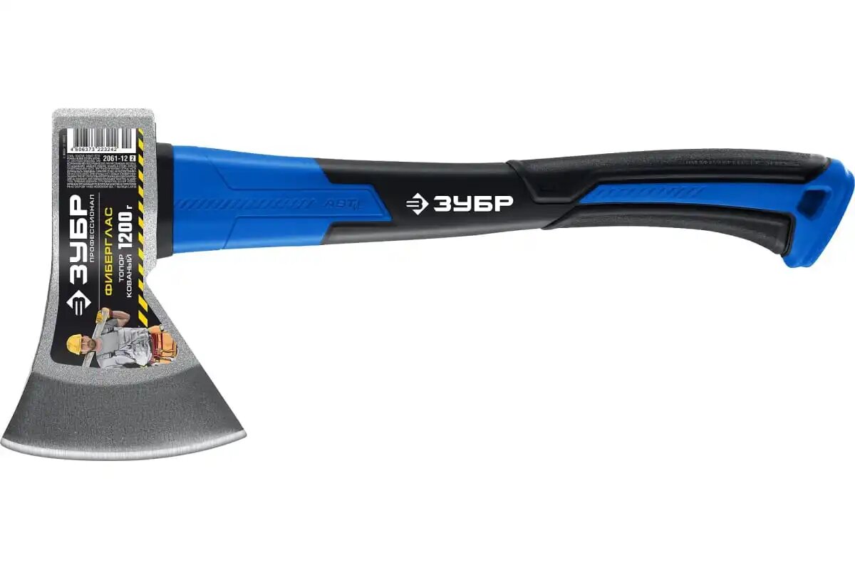 Топор ЗУБР "мастер" кованый с двухкомпонентной стеклопластиковой рукояткой, 1,2кг 2061-12