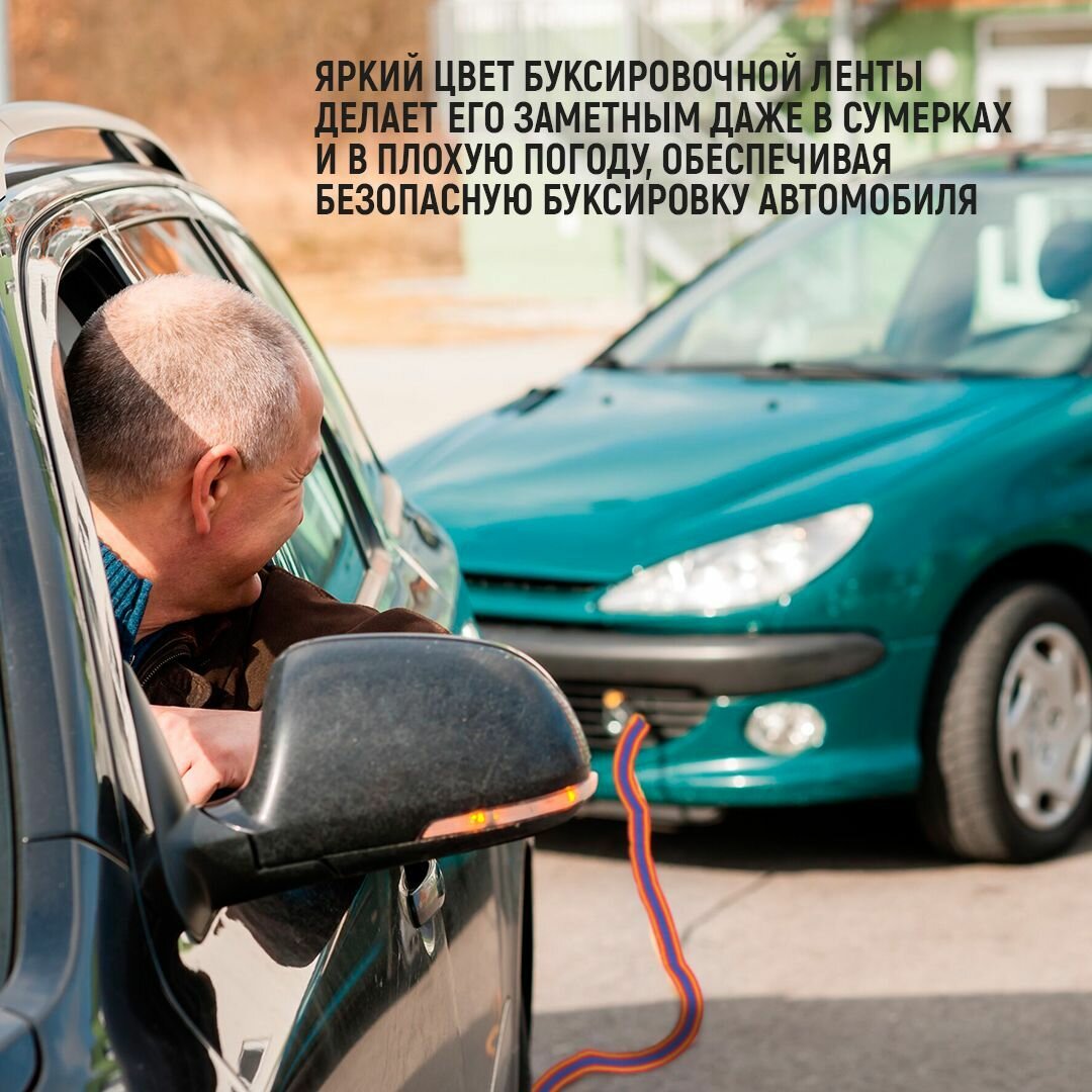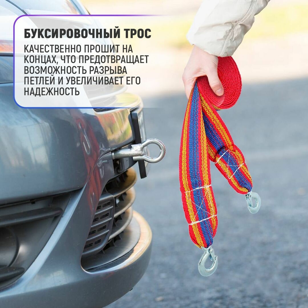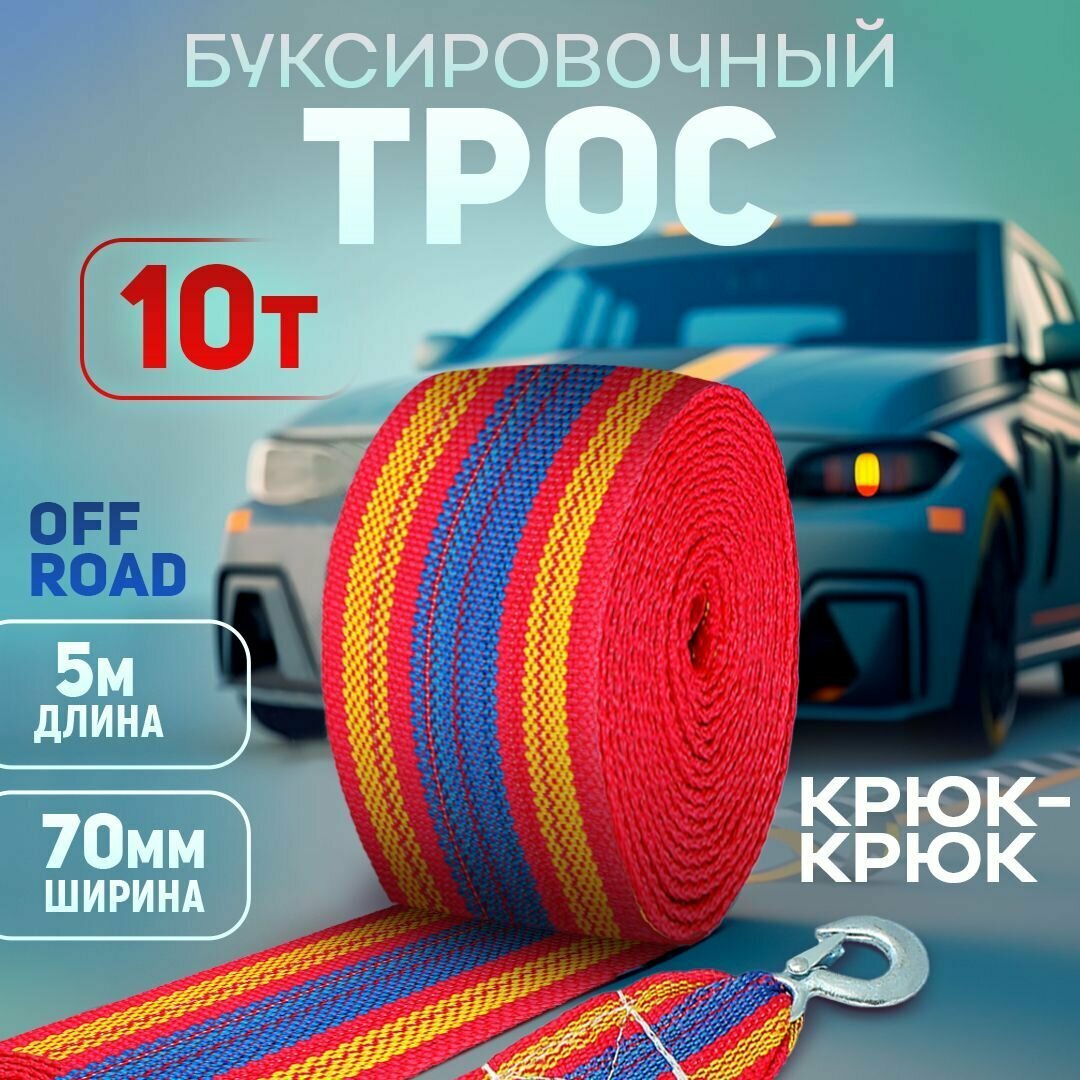 Трос буксировочный 10т, длина 5м, ширина 70 мм (крюк-крюк) интересное: