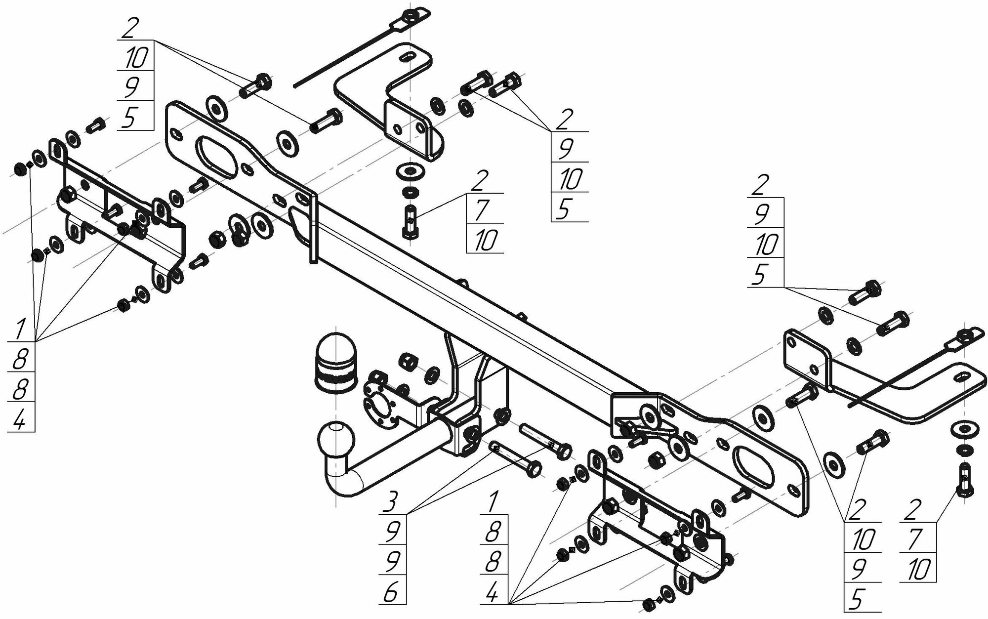 Фаркоп nissan pathfinder 2005-2014 г.в (оцинк. шар), MOTODOR 91407A (1 шт.)