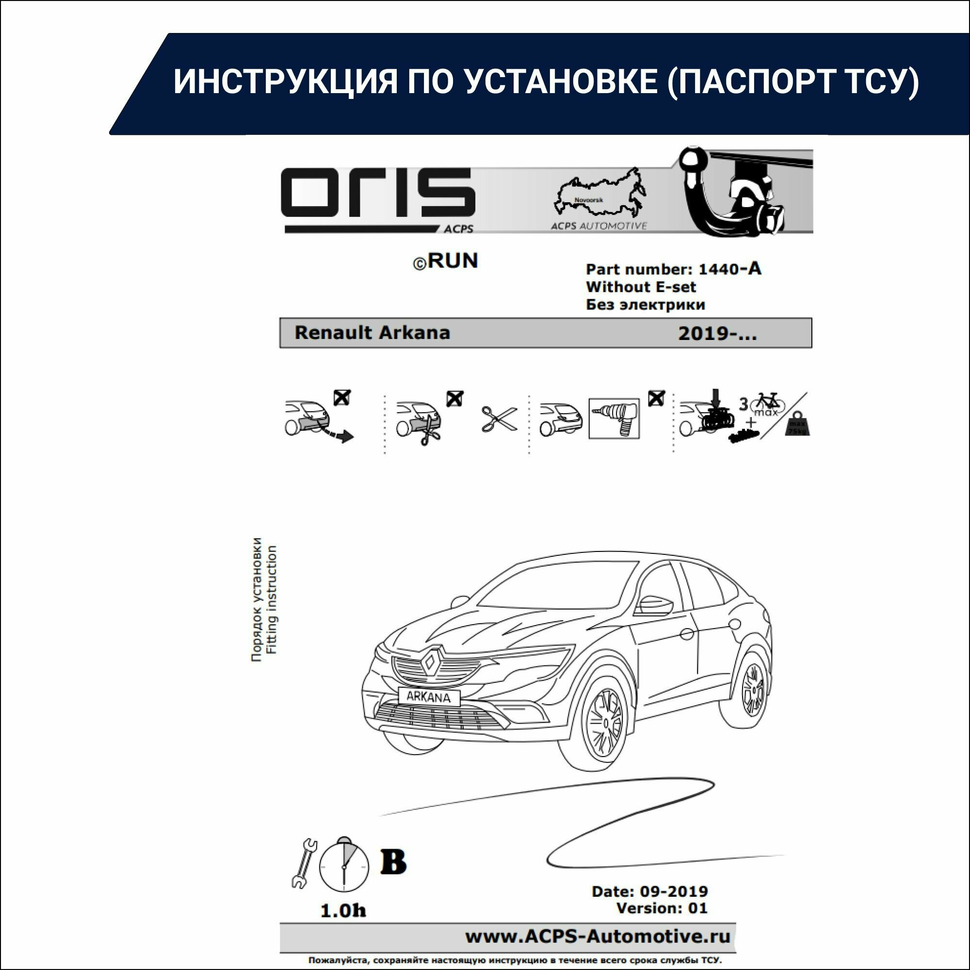 ORIS 1440A Фаркоп для Renault Arkana 2019 (без электрики)