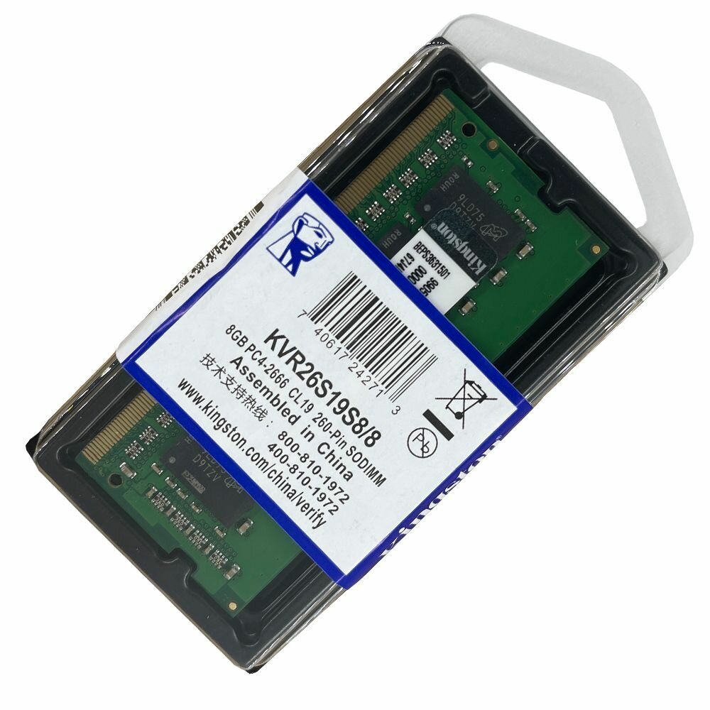 Модуль оперативной памяти Kingston Модуль оперативной памяти SO-DIMM 8ГБ DDR4 SDRAM Kingston ValueRAM KVR26S19S8/8 (PC21300, 2666МГц, CL19) (ret)