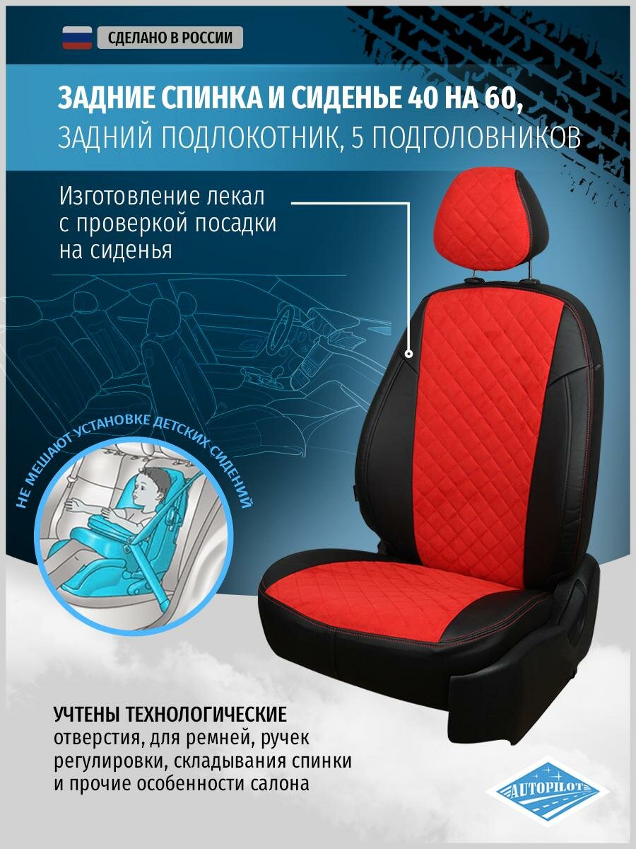 Комплект чехлов Автопилот Алькантара ромб SsangYong Kyron Черный + Красный