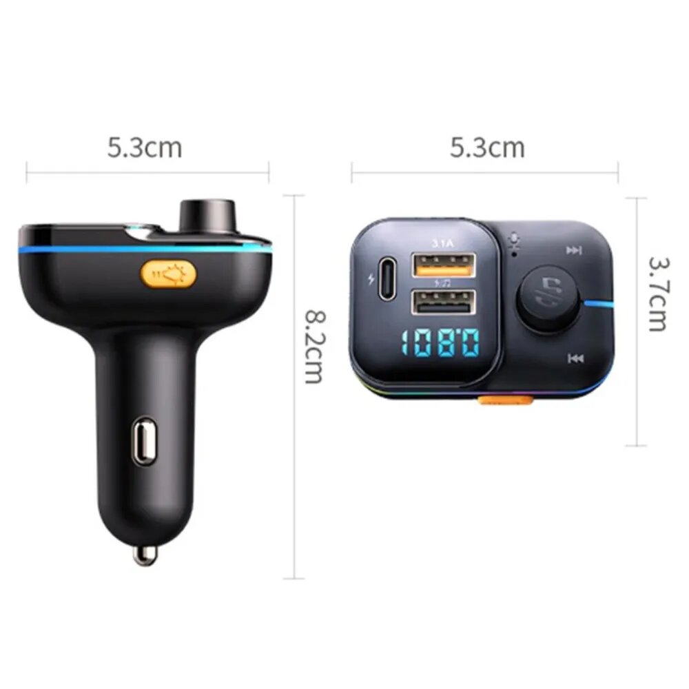 FM трансмиттер Bluetooth с RGB подсветкой / Модулятор автомобильный / Адаптер быстрой зарядки с 3 USB 3.1 A TDS-19 интересное: