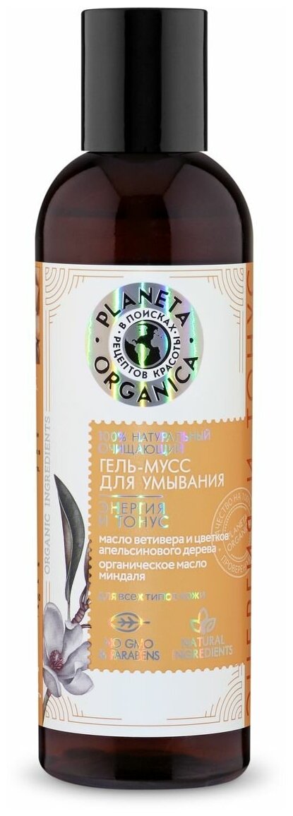 Planeta Organica 100% Натуральный очищающий гель-мусс для умывания Энергия и тонус, для всех типов кожи, 200 мл, Planeta Organica