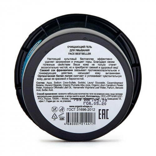 Гель для умывания очищающий Face Bestseller Organic Shop/Органик шоп 100мл