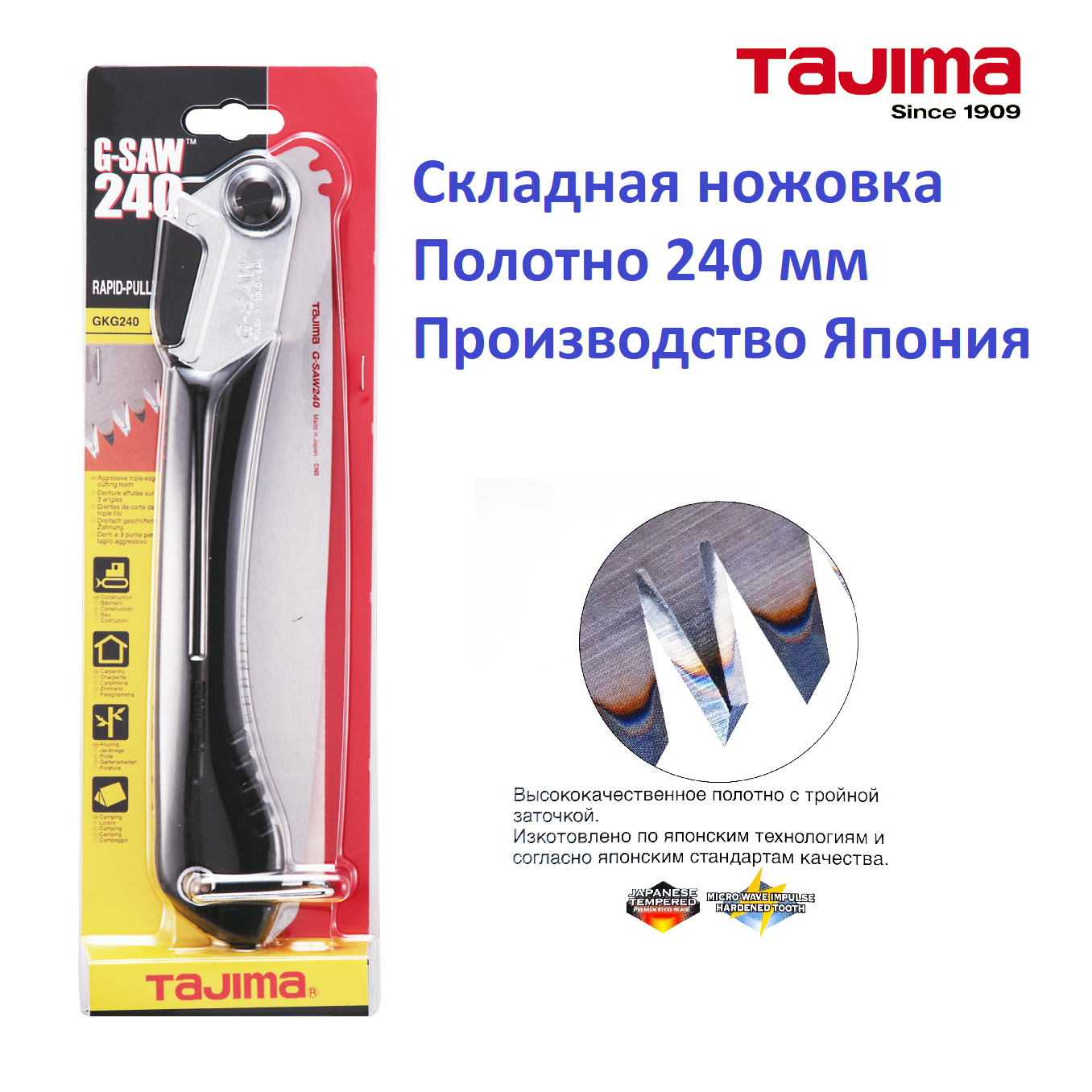 Купить Ножовка складная TAJIMA Rapid-Pull G-Saw GK-G240 (240мм) + запасное полотно GKBG240