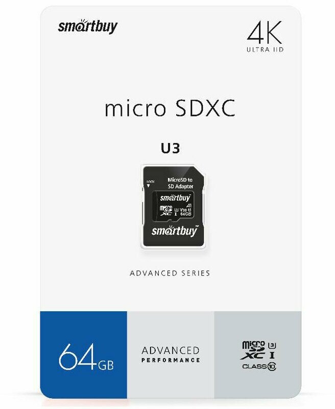 Ниже Вы можете прочитать отзывы на Карта памяти SmartBuy MicroSDXC 64GB PRO U3 Advanced, Class 10, скорость чтения 90Мб/сек (с адаптером SD) (арт. 347736), ознакомится с подробными характеристиками, посмотреть интересные обзоры и фотографии на Карта памяти SmartBuy MicroSDXC 64GB PRO U3 Advanced, Class 10, скорость чтения 90Мб/сек (с адаптером SD) (арт. 347736).
