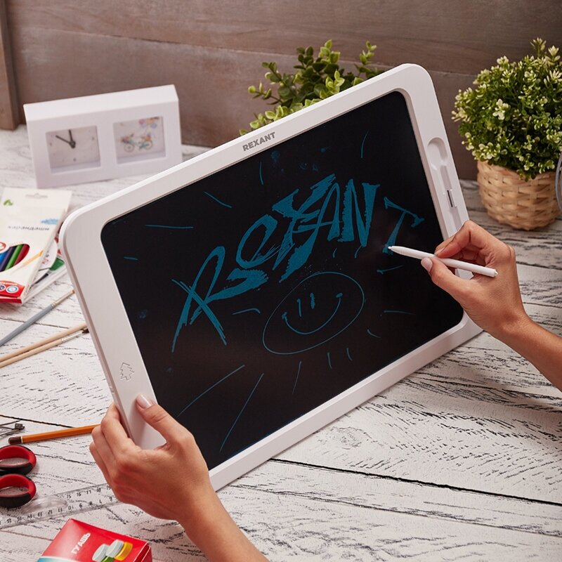 Электронный одноцветный планшет REXANT для рисования, диагональ 19 дюймов + стилус