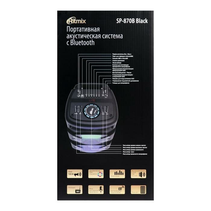 Купить RITMIX Портативная колонка Ritmix SP-870B, 120 Вт, Bluetooth, AUX, microSD, FM, 4400 мАч, чёрная