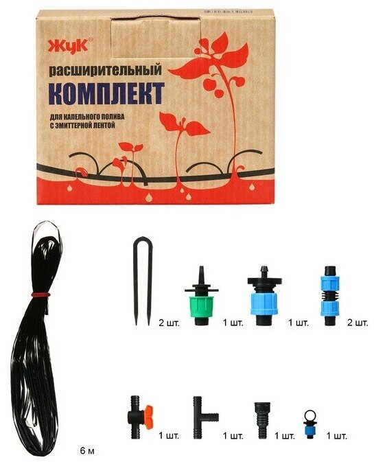 Комплект расширительный для капельного полива Жук, с эмиттерной лентой, 6 м