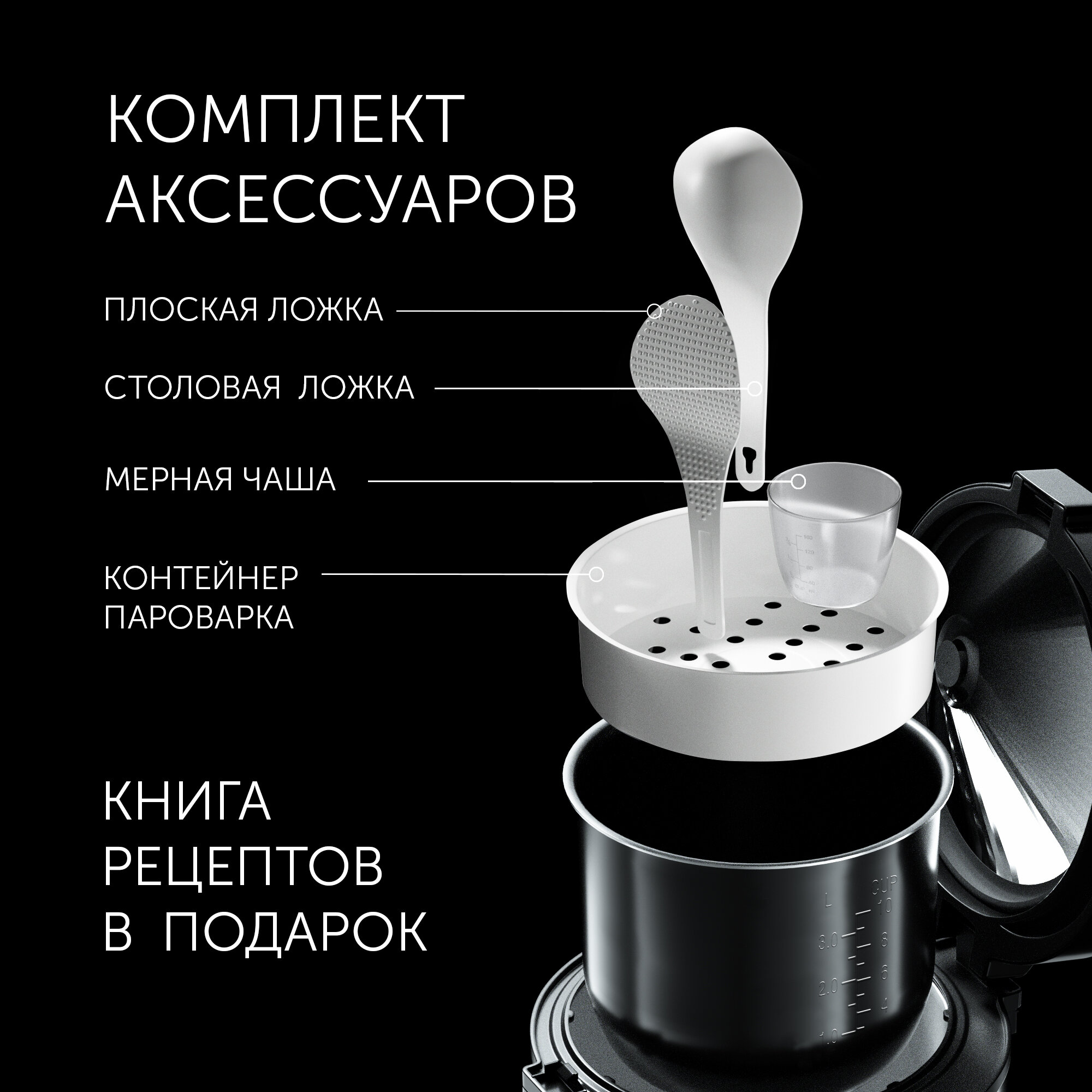 Комплект богатый, много всего есть, каждый найдет применение. Размеры мультиварки оптимальные, за счёт чего она хорошо вписывается на кухню. Цена за такое многофункциональное умное устройство хорошая. Рекомендую. |
