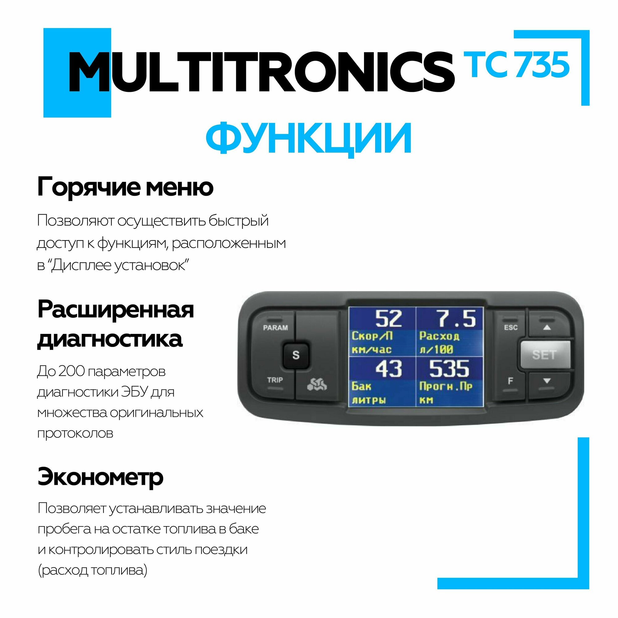 Бортовой компьютер Multitronics TC 735 без голосового сопровождения интересное: