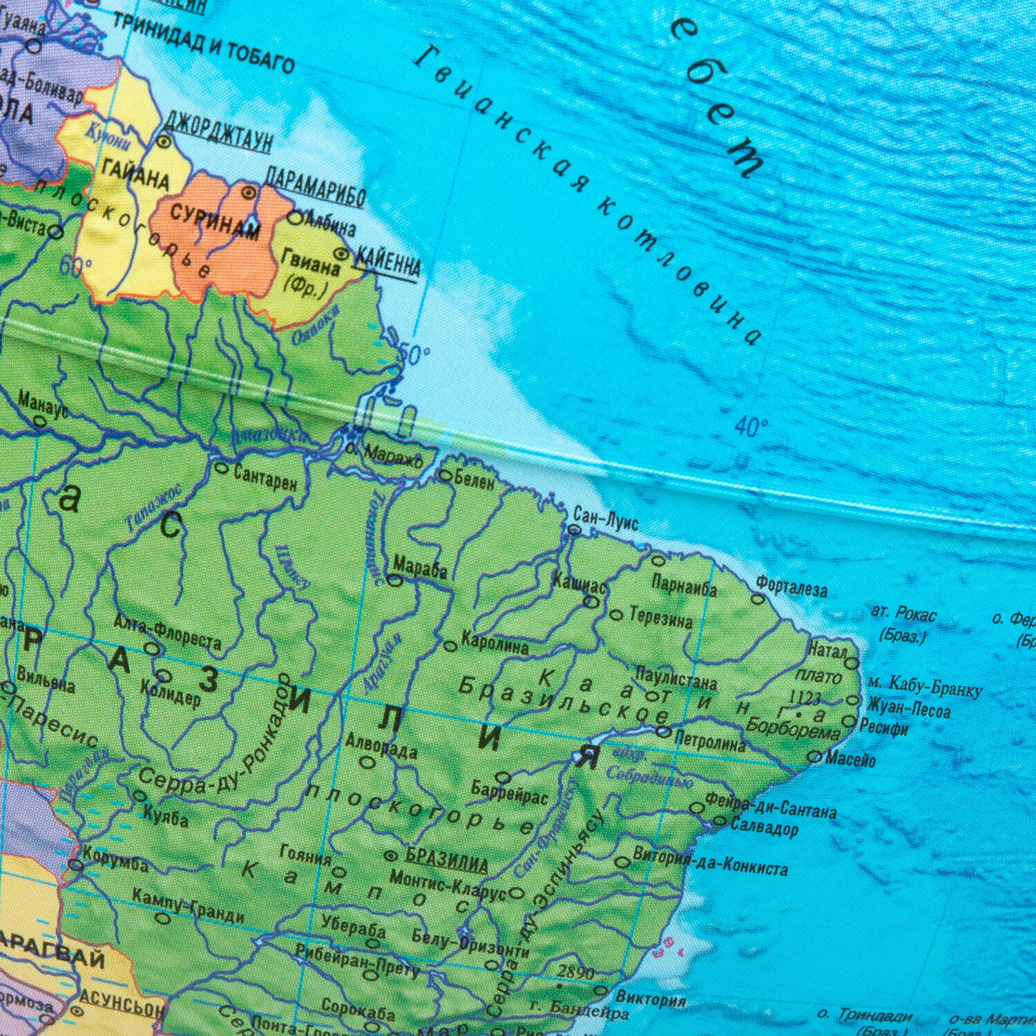 | Плюсы: | Простой классический глобус. Цвета яркие, но не кричащие, вращается хорошо. Очень легкий! |