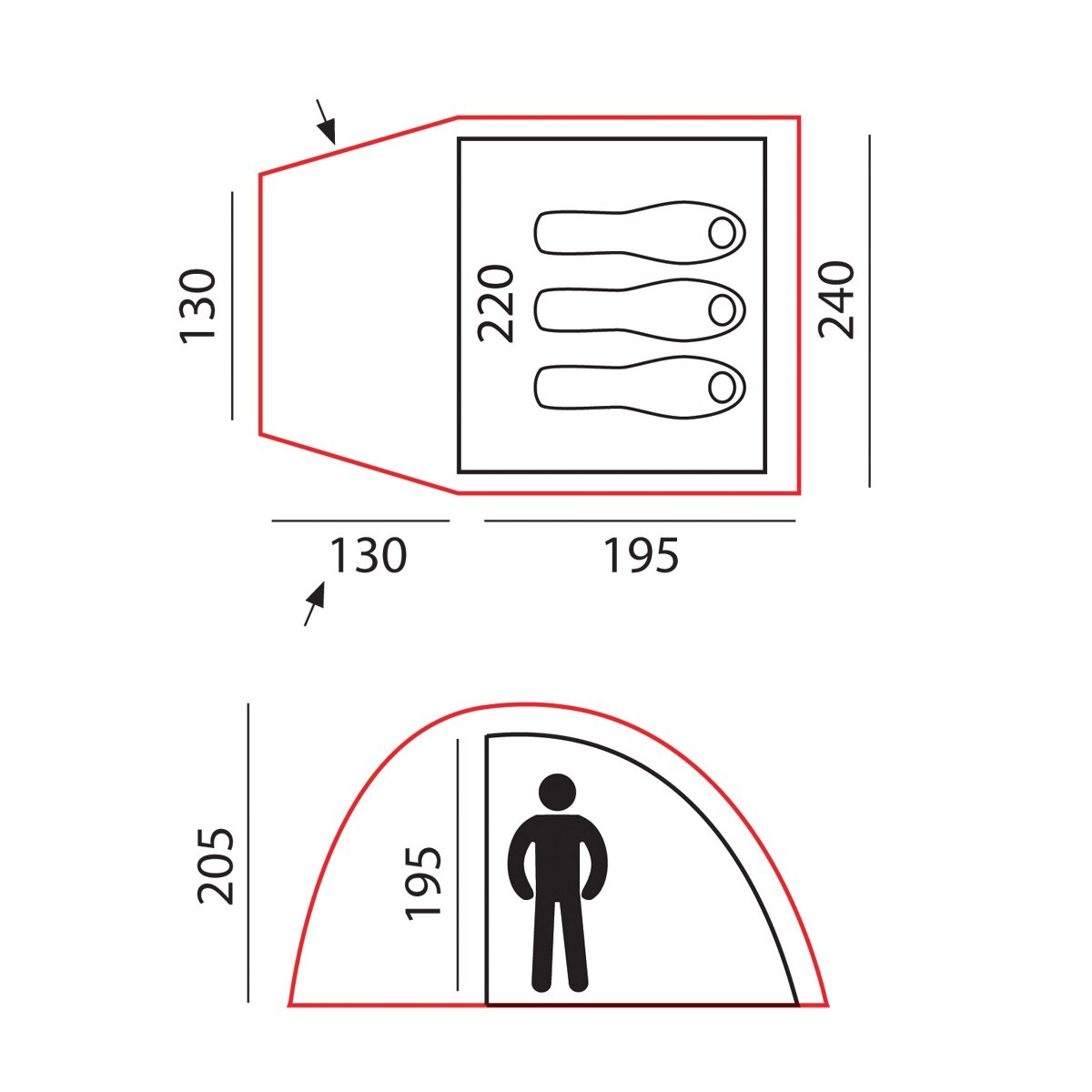 | Высота внешней палатки | 205 см |
