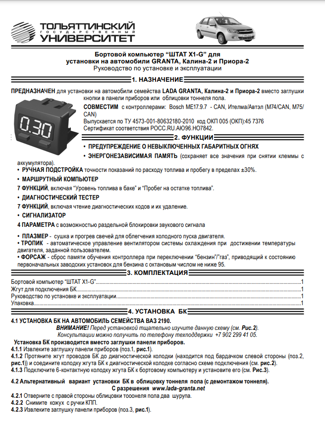 Компьютер бортовой Штат /2190 Гранта/ Х1