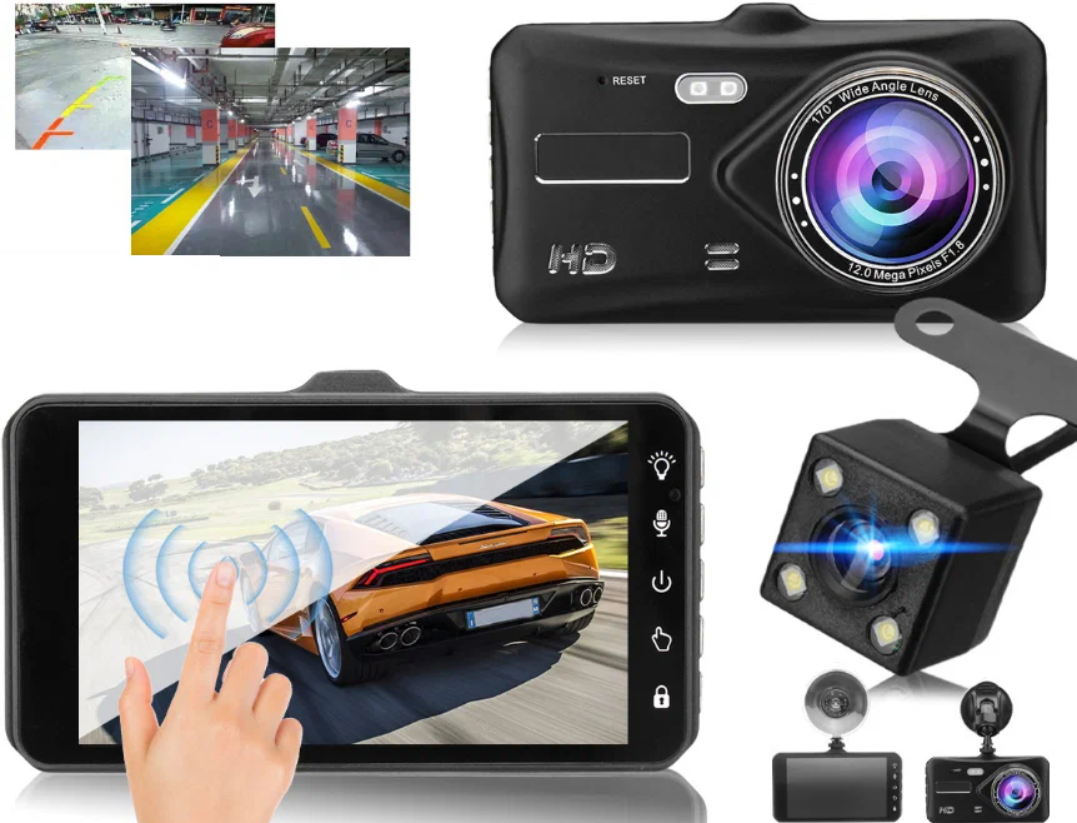 Автомобильный видеорегистратор Full HD 1080P с двумя камерами/Сенсорный 4 дюймовым дисплей/G-Sensor/Камера парковки интересное: