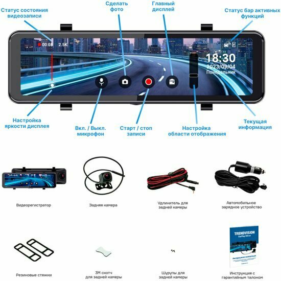 Видеорегистратор Trendvision CarPlay Mirror интересное:
