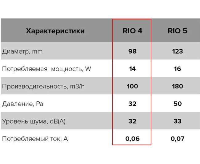 RIO 4C Obsidian, Вентилятор с обратным клапаном D 98